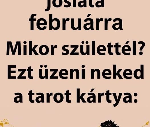Februárban a kalandok és az új lehetőségek hónapja vár rád. Nyitottságod és optimizmusod segít abban, hogy új barátságokat köss és új dolgokat próbálj ki. Munkahelyeden elismerésre számíthatsz, és egy régóta várt projekt végre megvalósulhat. Anyagi helyzeted javul, és egy kisebb nyeremény is érhet. Szerelmi életedben az őszinteség és a kalandvágy kerül előtérbe. Egy váratlan találkozás izgalmas fordulatot hozhat. A hónap végén egy utazás vagy különleges élmény gazdagítja az életedet. Hét év szerencse vár, ha kedvelés és a „sok szerencsét” beírása után gördítesz lejjebb!