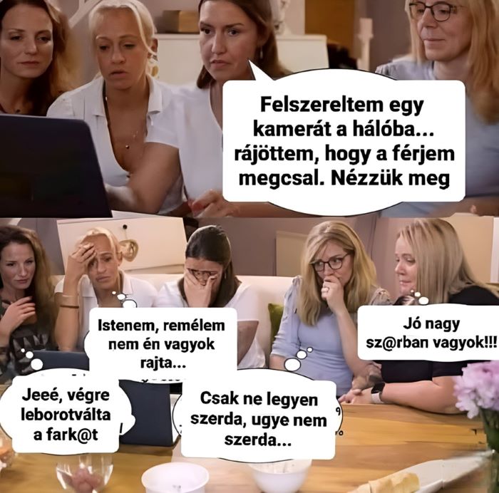 – Hát veled meg mi történt ? – kérdezi a férj megdöbbenve.